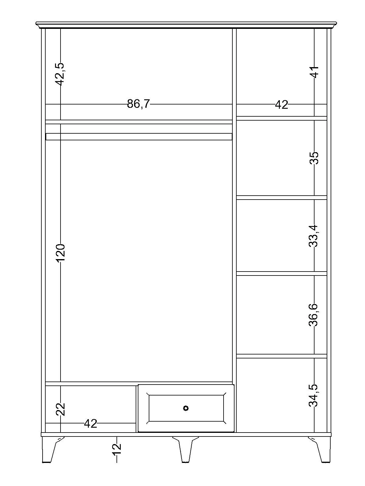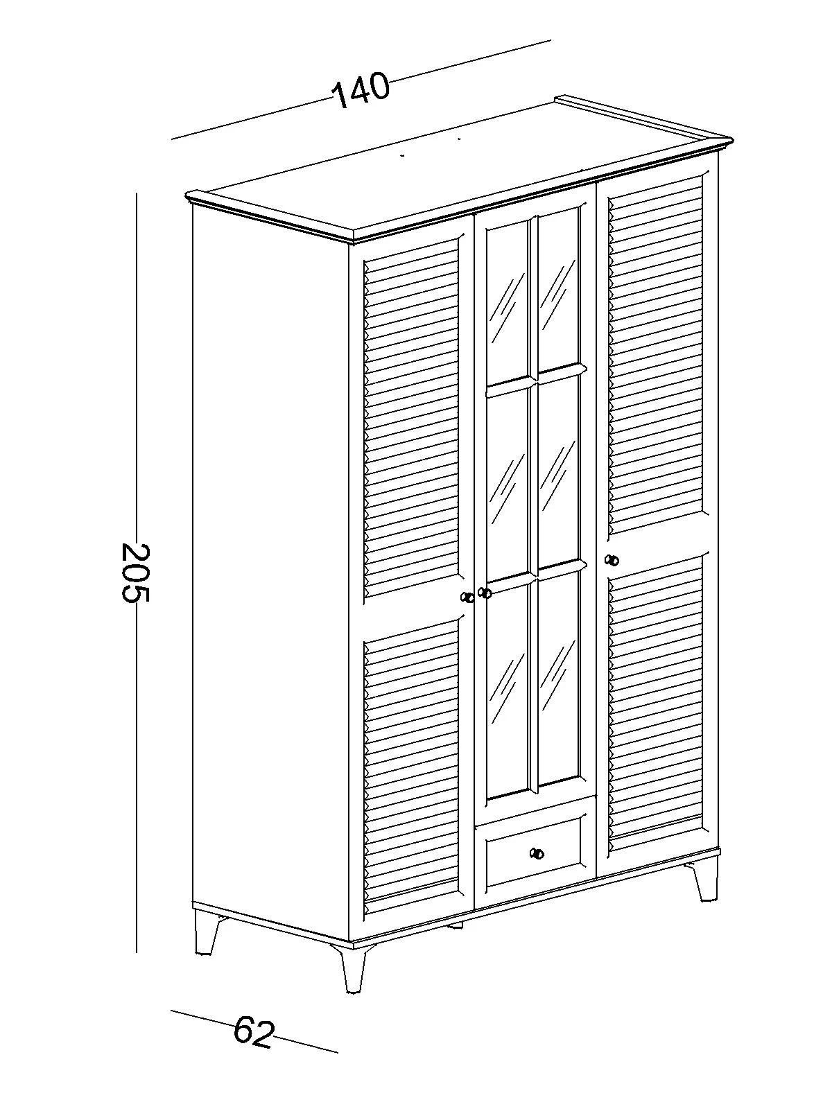 Afmetingen 140 × 205 × 62 cm