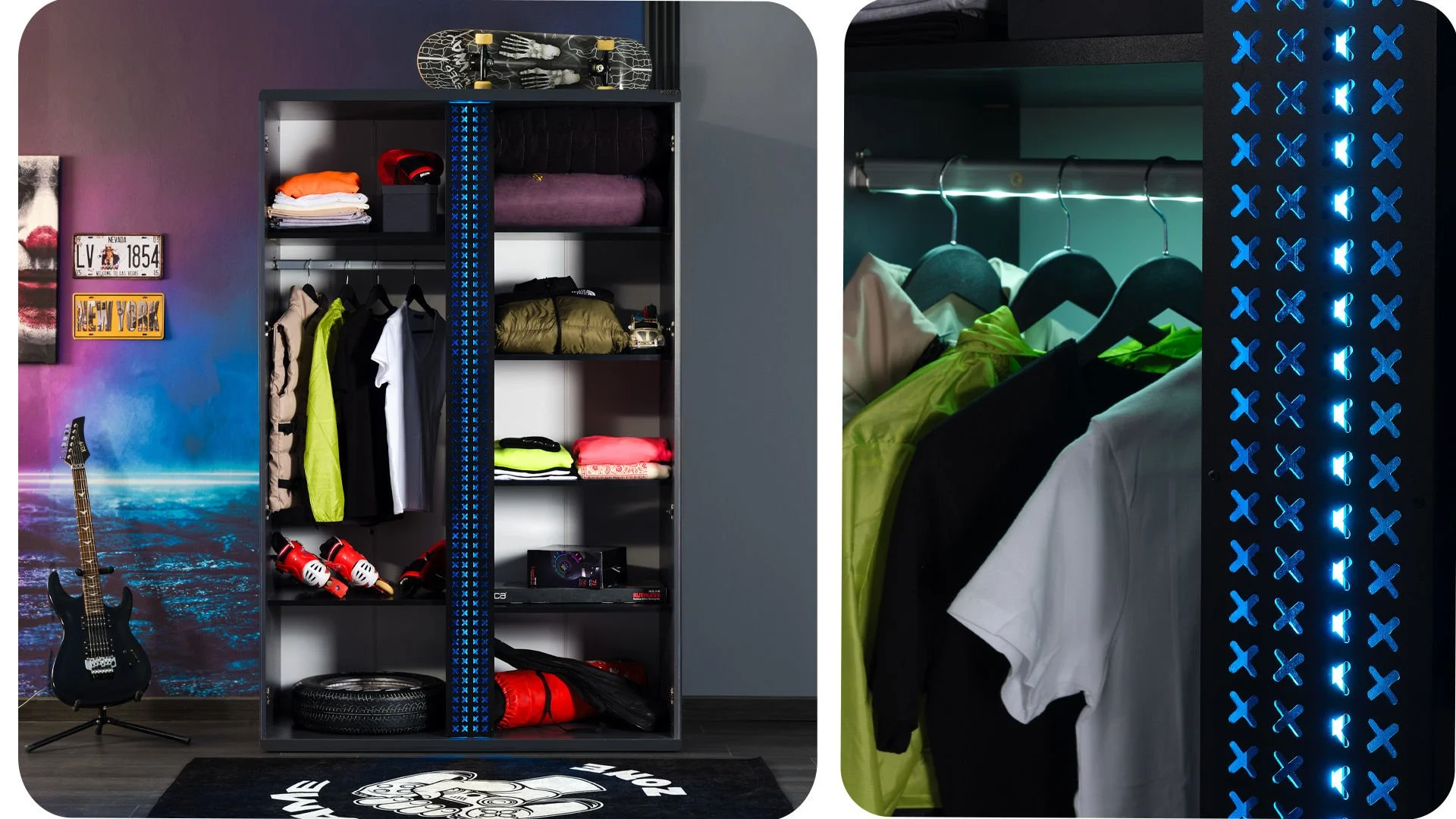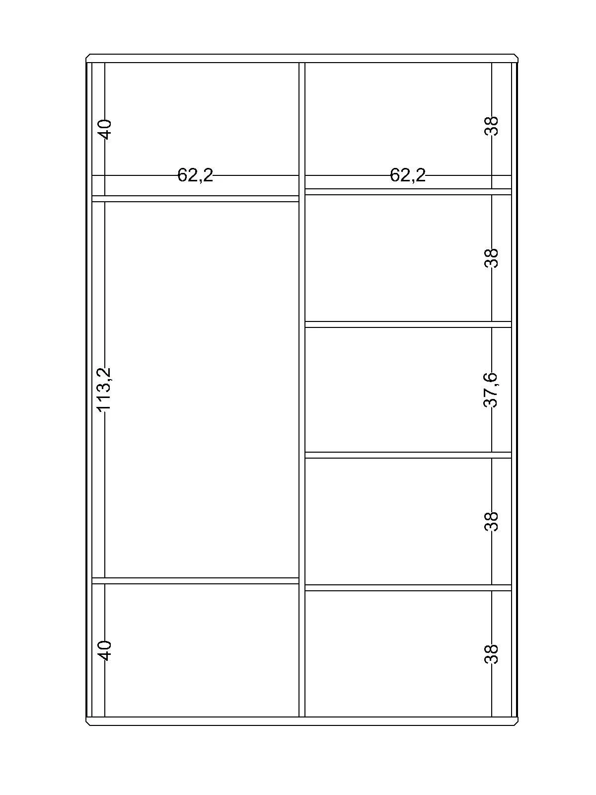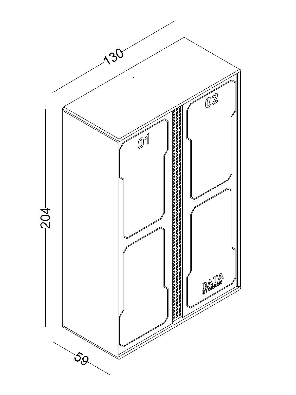 Largeur : 130 cm Hauteur : 204 cm Profondeur : 59 cm Des panneaux de particules mélaminés sont utilisés et présentent une haute résistance à l'eau et à l'humidité et...