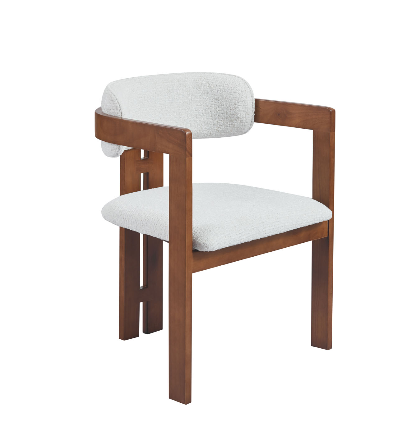 De Bastille Armrest Noyer valt op door zijn geometrische armleuningen en robuuste notenhouten frame. Het ontwerp ademt een mix van mid-century modern en Japans minimalisme, met een sterke focus op vorm en functie. De zachte kussens bieden comfortabel zitgemak, terwijl de open constructie luchtigheid en karakter toevoegt aan elke ruimte — van vergadertafel tot leeshoek.