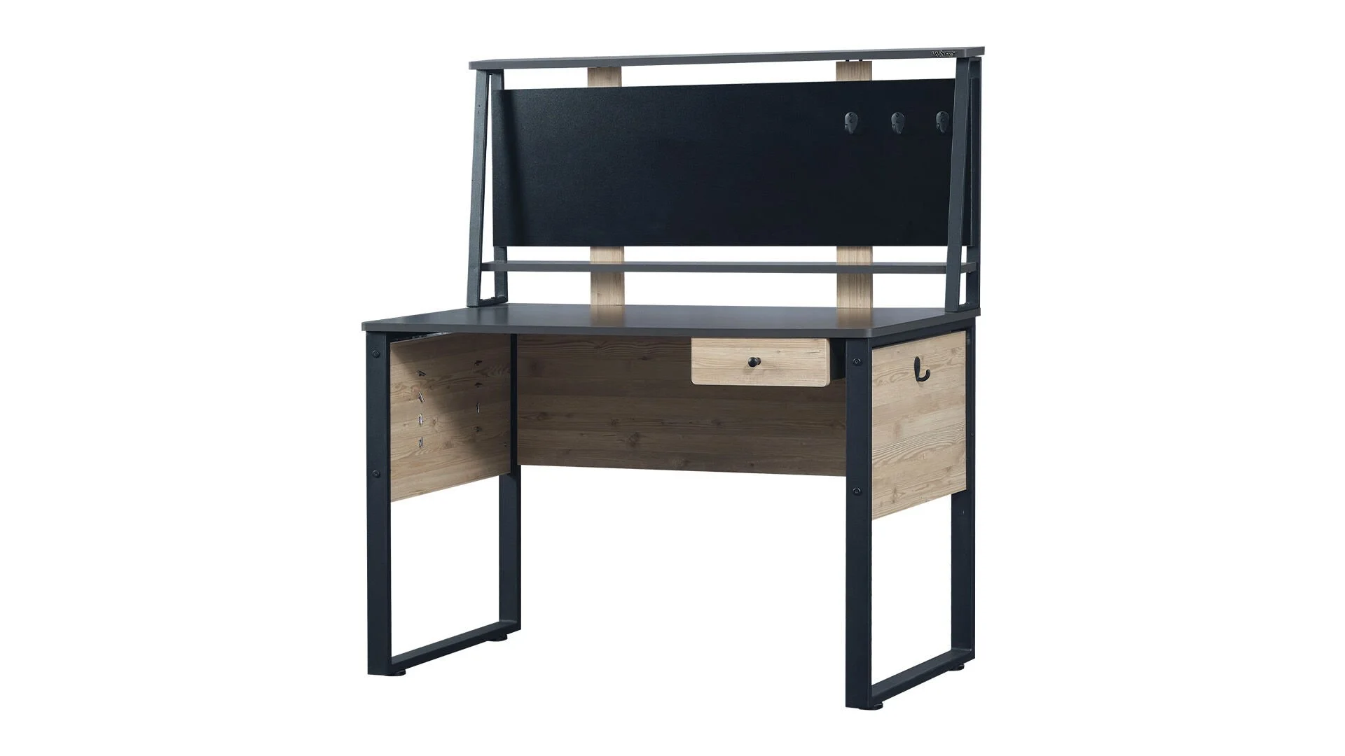 * Tablettes inférieures et supérieures de l’unité qui donnent au bureau un aspect bien rangé.