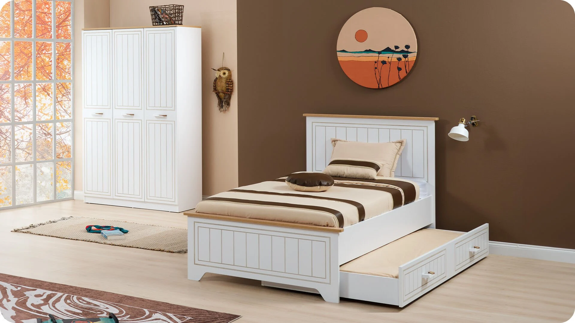 * Possibilité d’être déplacé à l’emplacement souhaité grâce à la fonction de roulettes sous le lit.
