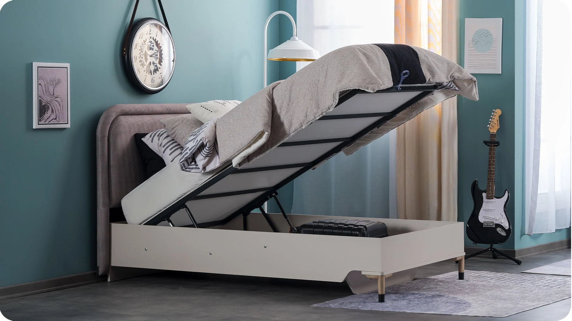 * Il peut être utilisé pendant de nombreuses années avec un espace de rangement, des amortisseurs verrouillés de sécurité, une capacité de charge maximale de 130 kg, un lit intérieur de 100 x 200 cm.