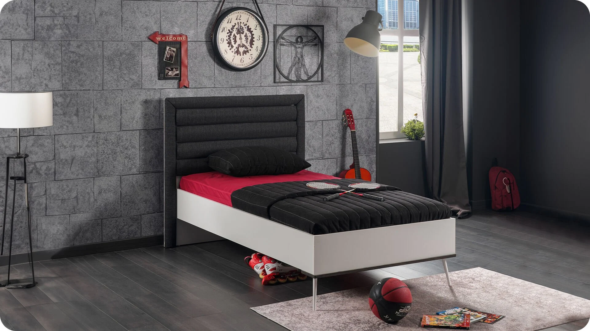 Largeur : 120 cm Hauteur : 112 cm Profondeur : 205 cm (Tête de lit incluse.)
